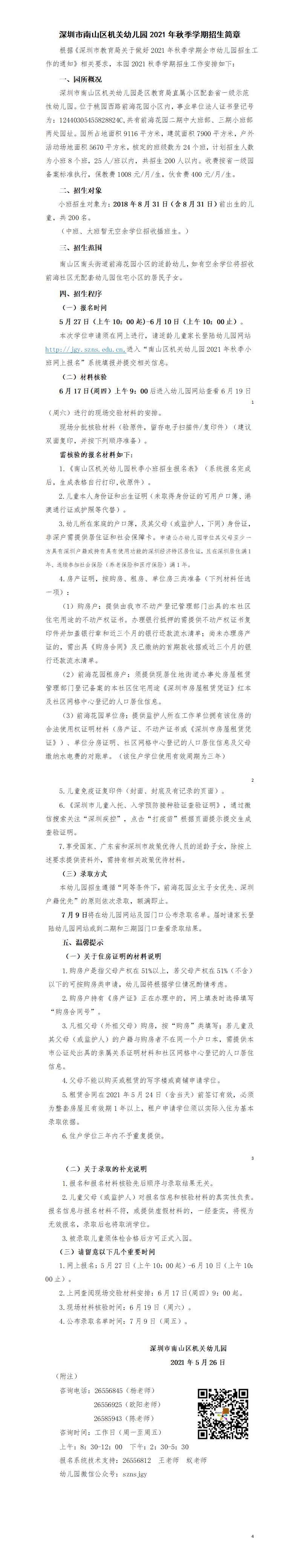 深圳市南山区机关幼儿园2021年秋季学期招生简章已于近日公布,具体内容如下: